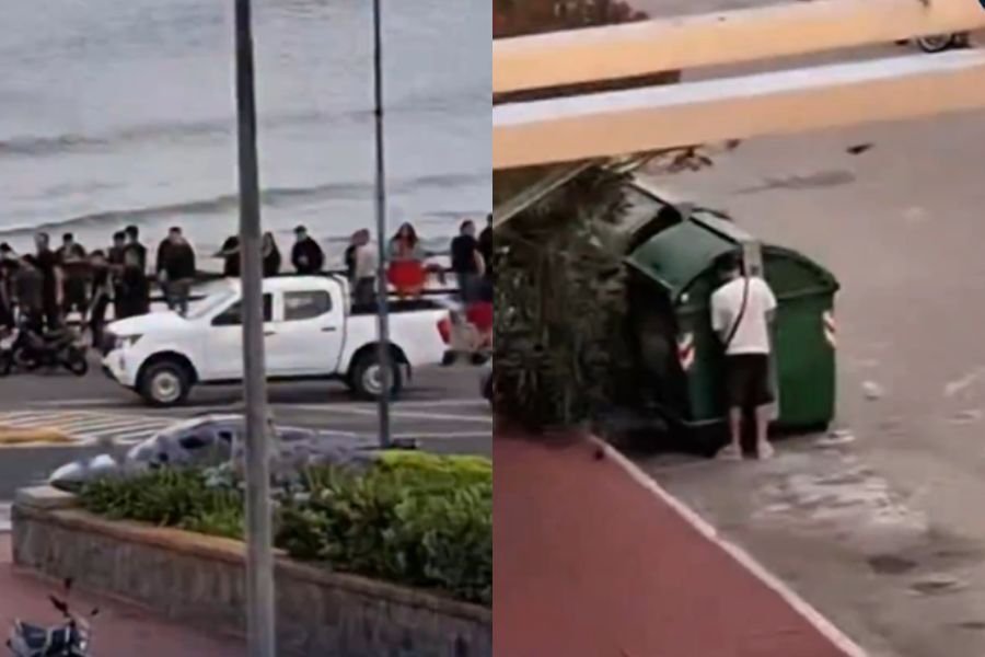 En un video filmado por un hombre, consignado por el medio local Cadena del mar, se puede observar a una gran cantidad de personas apostadas sobre la vereda escuchando música a un volumen alto y a un joven orinando al costado de un contenedor de basura.