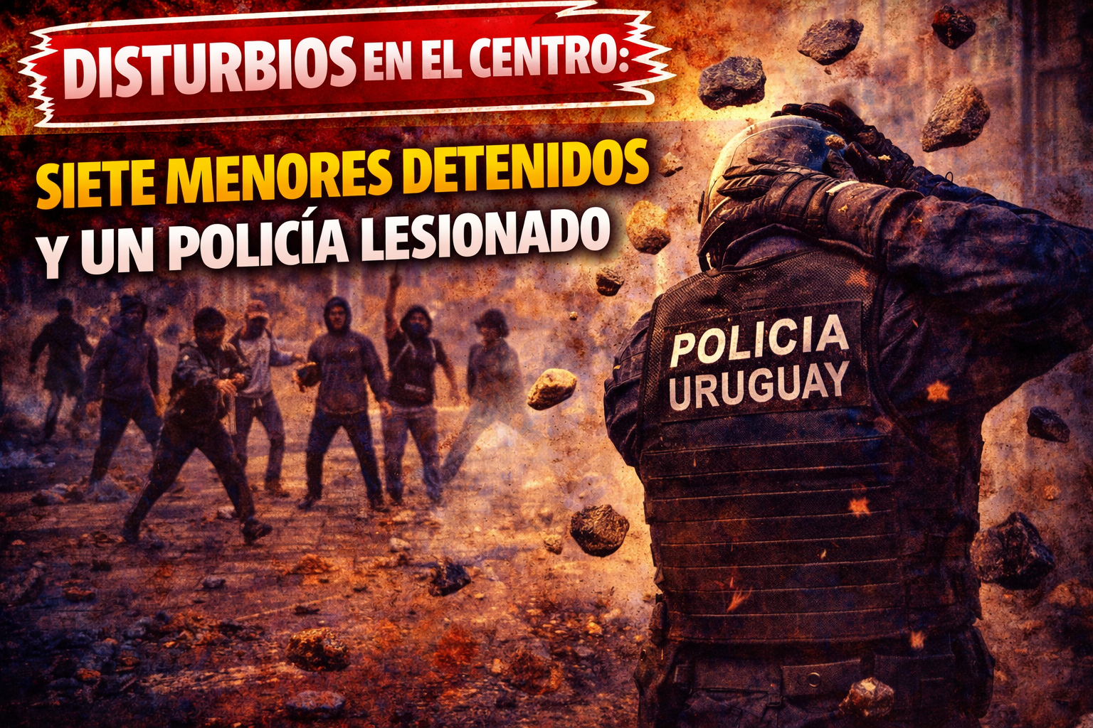 Por disposición del fiscal de turno y del Juzgado de Familia, se procedió a la detención de siete menores involucrados en el incidente. El policía herido fue asistido, constatándose que presentaba lesiones leves. Las actuaciones continúan.
